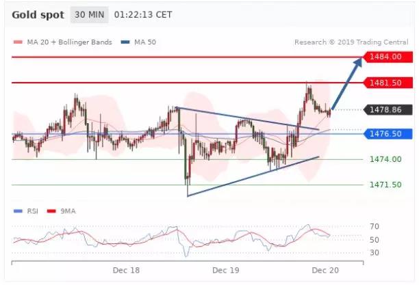 交易策略:在 1476.50 之上,看涨,目标价位为 1481.50 ,然后为 1484.00