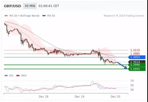 交易策略:在 1.3055 之下,看跌,目标价位为 1.2990 ,然后为 1.2955